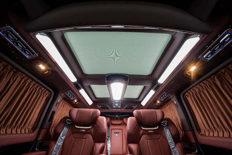 المصباح ' التكامل مع المركبة ' تُظهر نسيج ومواد المقصورة الداخلية عناية فائقة بالتفاصيل. حيث تتناسق تشطيباتها وخطوطها تمامًا مع طرازي مرسيدس-بنز V-Class وVito ' الأسطح عالية الجودة، مما يعزز شعورًا بالانسجام بدلًا من التدخل. يحترم هذا المفهوم التصميمي المعايير الفاخرة للمركبة، مع توفير حل إضاءة مبتكر يحوّل تجربة الركاب الخلفيين المعتادة إلى بيئة راقية.