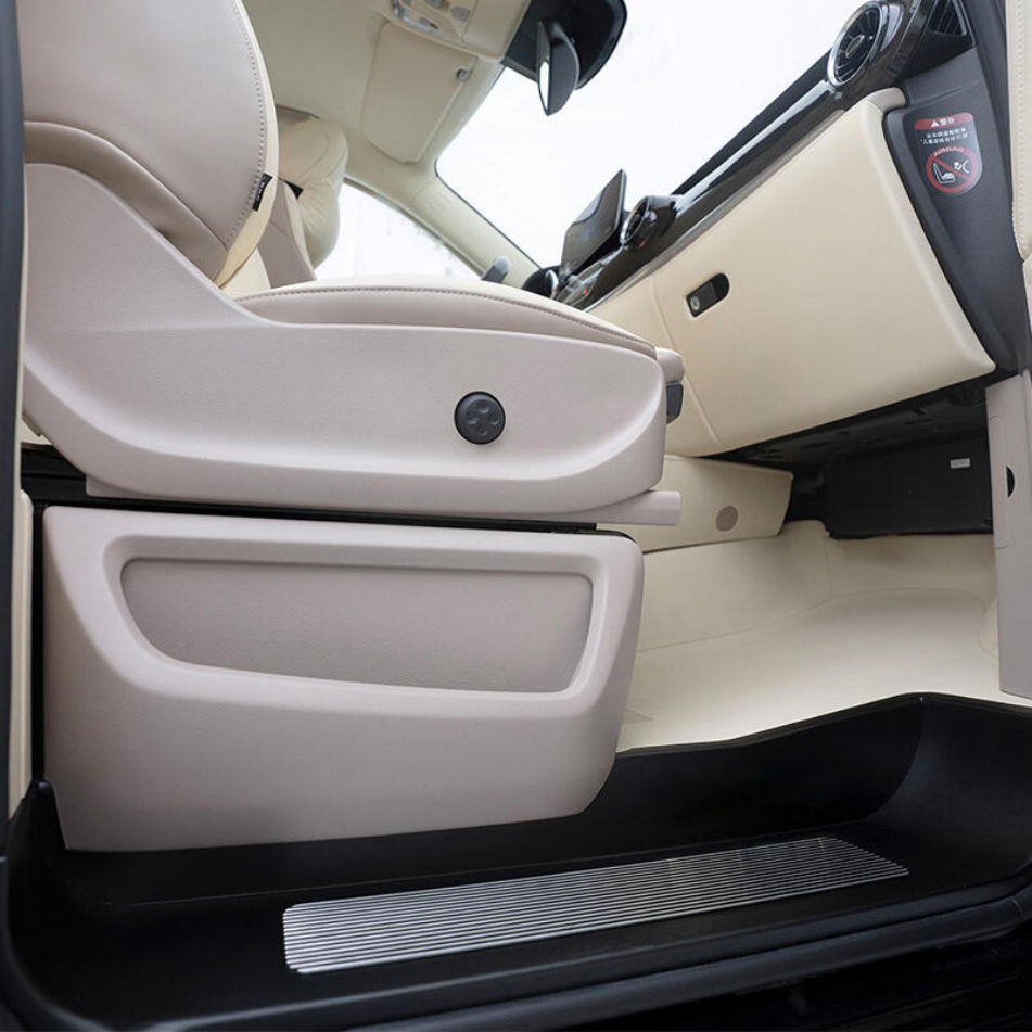 La finition en métal brossé offre un look raffiné et haut de gamme qui met en valeur le savoir-faire exceptionnel du V300L. Les logos en relief ajoutent un élément de marquage subtil mais distinctif, renforçant l'identité du véhicule de luxe. Au-delà de l'esthétique, ces seuils de porte intègrent des fonctionnalités pratiques telles qu'une surface antidérapante et une résistance à la corrosion, optimisant ainsi la sécurité et la durabilité.