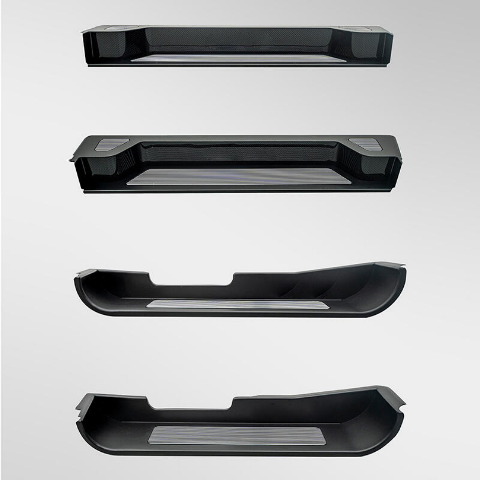 Le pack comprend des seuils de porte avant gauche et droit, ainsi que des panneaux pour portes coulissantes. Le design plug-and-play signifie qu'aucun perçage ni découpage n'est nécessaire pour l'installation, ce qui permet de gagner du temps et d'éviter tout dommage — un critère important tant pour les utilisateurs finaux que pour les professionnels impliqués dans la personnalisation et l'entretien des véhicules.